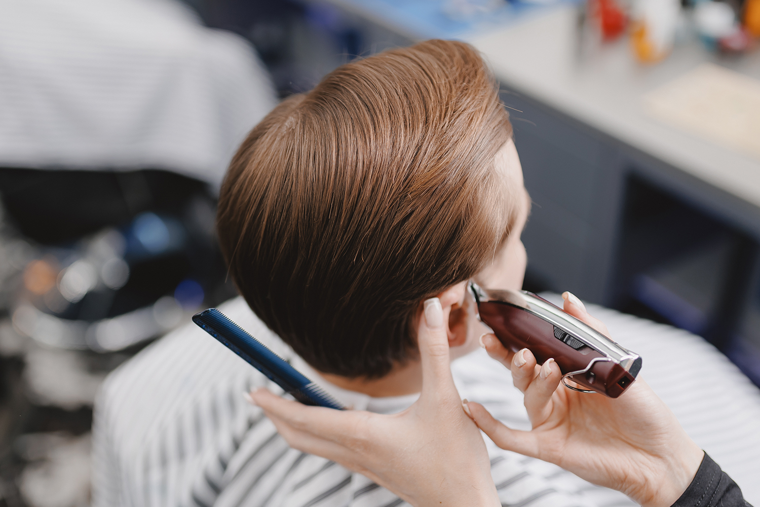 Met de tondeuse creëren we een verzorgd en gelijkmatig kapsel dat past bij jouw stijl. Deze behandeling is ideaal voor kort haar en zorgt voor een frisse en nette uitstraling.